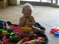 Description: Luke squeals while playing by himself. |